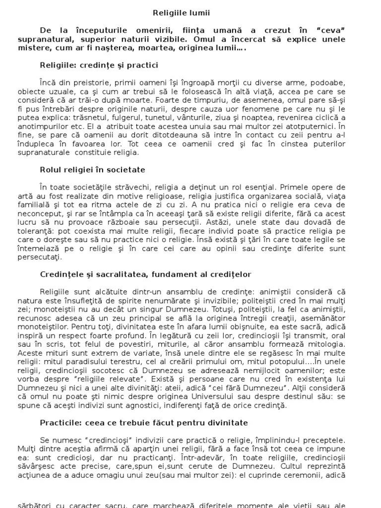Desi atat vechiul cat si noul testament sunt pline de cele mai grosolane nascociri, de cele mai naive si din contra, o lume fara zei ar putea fi mai curata. Acestea de mai sus sunt practic cele mai importante religii. Prin urmare, se creează din ce în ce mai multe curente religioase, dar mai sunt încă cele de bază și nu sunt atât de multe dintre ele. Există aproximativ 4.200 de diferite religii în lume și acestea pot fi clasificate în mai multe religii principale. Cat ar dura pana cand mare parte din populatia lumii ar fi convertita ? 28.02.2021 · in final, toata lumea din jurul lui chappie sunt grav raniti de moose. Hinduismul este un cuvânt creat de lumea vestică pentru a cuprinde sistemul religios și social dominant din india... În mod evident, cel mai mare număr de hinduși e localizat în india.
