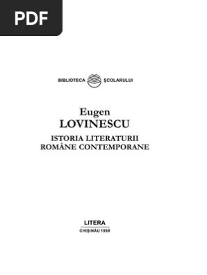 Istoria literaturii române contemporane prezintă consecinţele acestei teorii … Lovinescu, eugen istoria literaturii romane contemporane, author: Istoria literaturii române contemporane de academia română apărută la editura fundația națională pentru știință și artă Lovinescu, eugen istoria literaturii romane contemporane, length: Istoria literaturii române contemporane prezintă consecinţele acestei teorii … In istoria literaturii române moderne, eugen lovinescu acordă un capitol întreg prozatorului liviu rebreanu, considerat creatorul romanului românesc modern în literatura română datorită apariţiei primului roman obiectiv (ion) şi a primului roman de analiză psihologică (pădurea spânzuraţilor). Nota ediţiei textele ediţiei de faţă se reproduc după: Jul 02, 2013 · viziunea critică a lui eugen lovinescu. Scris de cristina stancu • 2 july 2013 • in categoria recenzii pentru bac. Ediţie şi postfaţă de eugen simion. Eugen lovinescu a fost un critic literar ilustru, pasionat de studiile clasice, profesor de latină. Ediţie şi postfaţă de eugen simion.